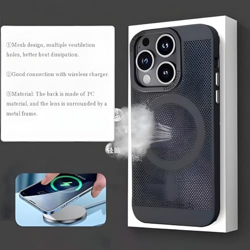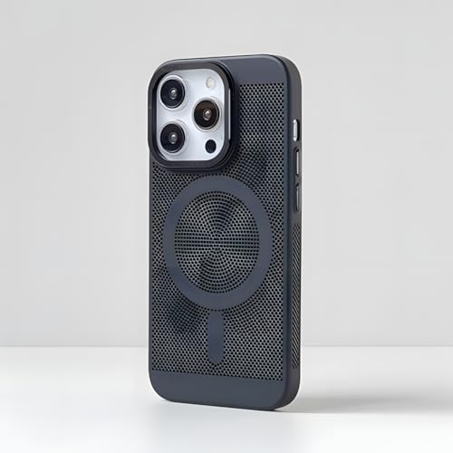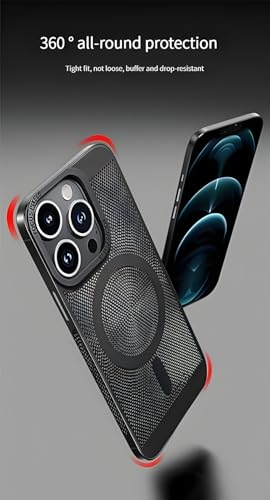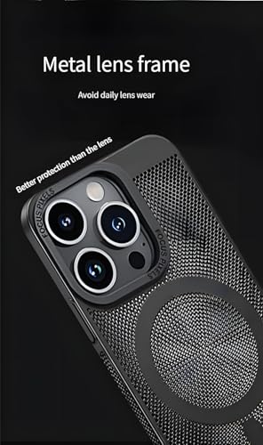 Next store - جراب حماية من نيكست ستور بتصميم شبكي عالي الجودة متوافق مع موبايل ايفون 14 برو ماكس مصنوع بولي كربونات ومزود بمسامات للتهوية ومبدد للحرارة يدعم الشحن اللاسلكي مضاد للصدمات لون أسود