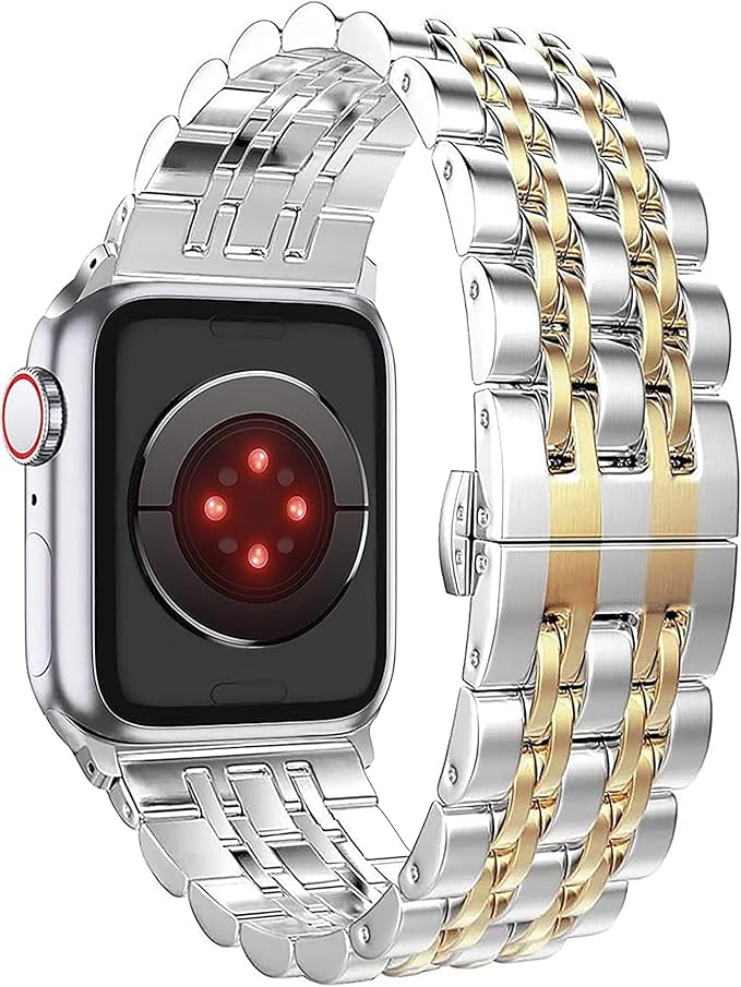 Next store - سوار ساعة معدني فاخر من الستانلس ستيل بتصميم وصلات معدنية أنيقة من Next Store متوافق مع ابل ووتش سيريس 1 2 3 4 5 6 7 8 9 10 الترا الترا 2 SE مقاس 42 44 45 46 49 ملم.