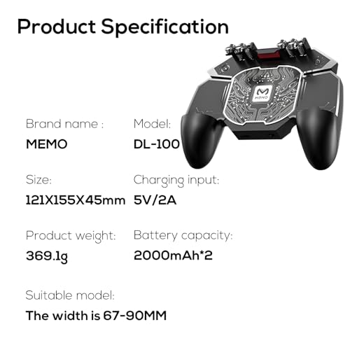 Next store - يد تحكم ألعاب من دي إل100 موديل DL100 للهواتف الذكية، متوافقة مع الهواتف الذكية، مع تصميم مريح ونظام تبريد مزدوج ومقاومة للانزلاق، باللون الأسود