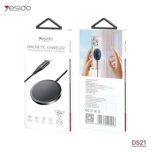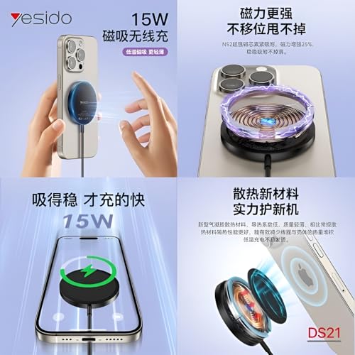 Next store - شاحن لاسلكي مغناطيسي DS21 من Next Store، مغناطيس قوي N52، يدعم شحن سريع 7.5W/10W/15W، مع كابل USB-C بطول 1.2 متر