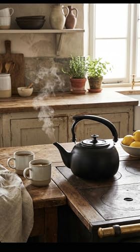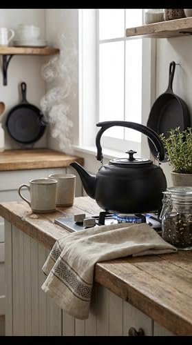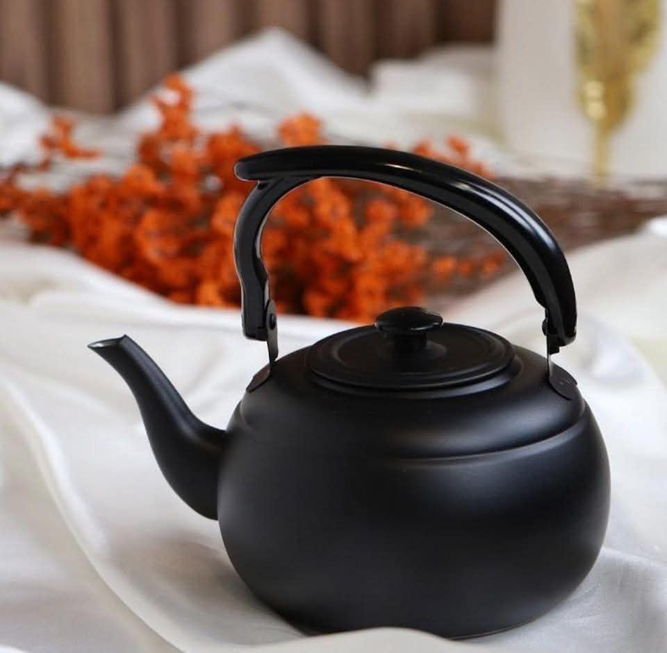 - تصميم أسود مطفي فاخر (Matte Black): تتميز الغلاية بلون أسود مطفي جذاب يمنحها مظهراً عصرياً وأنيقاً، مما يجعلها قطعة بارزة تخطف الأنظار في أي مطبخ حديث أو ركن قهوة متطور.