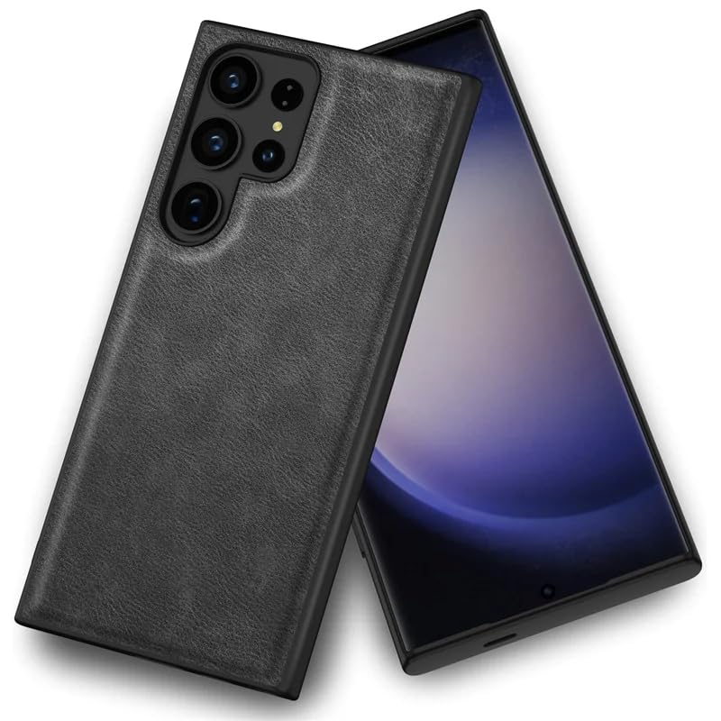 Next store - جراب جلد فاخر من نيكست ستور متوافق مع سامسونج جالاكسي S23 الترا - جلد صناعي، مقاوم للصدمات، مقاوم للخدش، غطاء بحافة ناعمة. (اسود)