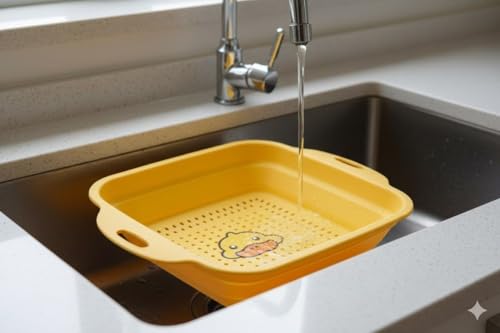 Next store - مصفاة مربعة قابلة للطي بتصميم "البطة"، من Next Store سلة غسيل خضروات وفواكه سيليكون، وعاء تصفية موفر للمساحة بمقابض جانبية
