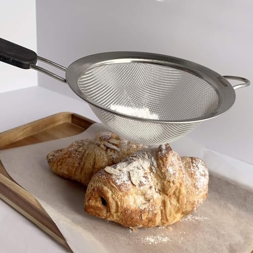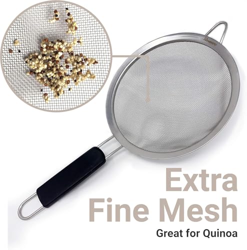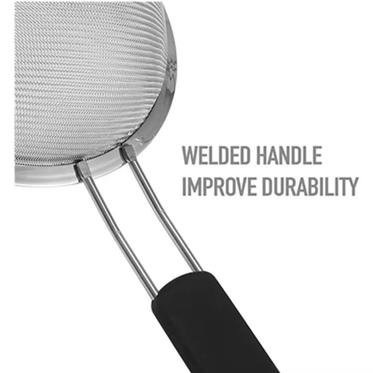 Next store - مصفاة ستانلس ستيل بيد طويلة،من Next Store مقاس 18 سم مصفاة مطبخ احترافية للمكرونة والخضروات والفواكه، أداة تصفية متينة وسهلة الاستخدام