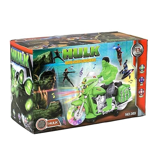 Next store - لعبة موتوسيكل البطل الخارق من Next Store ، دراجة نارية خضراء مع شخصية أكشن ، لعبة إلكترونية متحركة مع أضواء LED ساطعة وموسيقى شيقة ، هدية مثالية للأطفال والأولاد محبي الأبطال الخارقين.