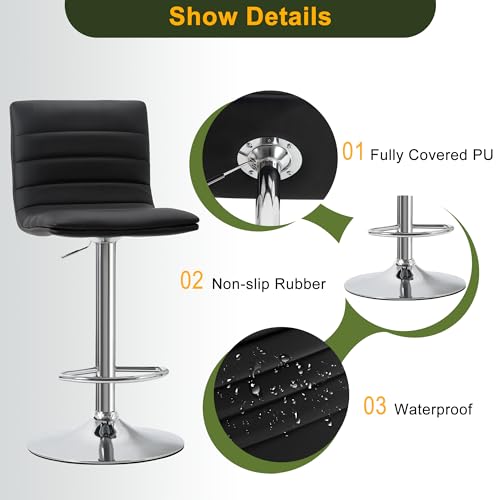 NicBex - مقاعد بار دوارة عصرية من جلد البولي يوريثين قابلة للتعديل من نيكبيكس، مجموعة من 2 قطعة (لون أسود)