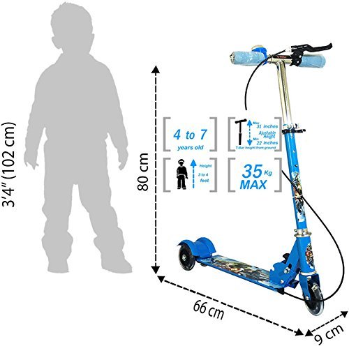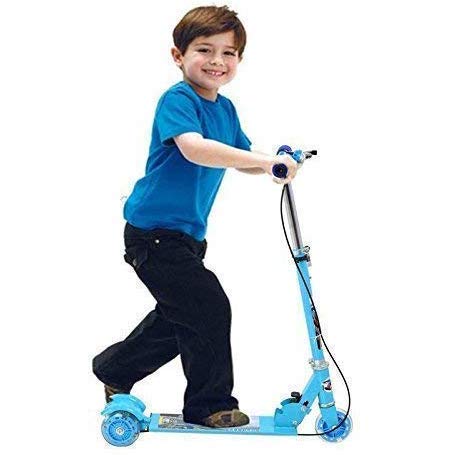 Nijek Store - سكوتر قابل للطي بثلاث عجلات للاطفال من نيجيك ستور بارتفاع للتعديل، مع فرامل وجرس، عدد العجلات: 3، متعدد الألوان، هيكل يحتوي على خليط معدني الستانلس ستيل، سبيكة صلب، طفل