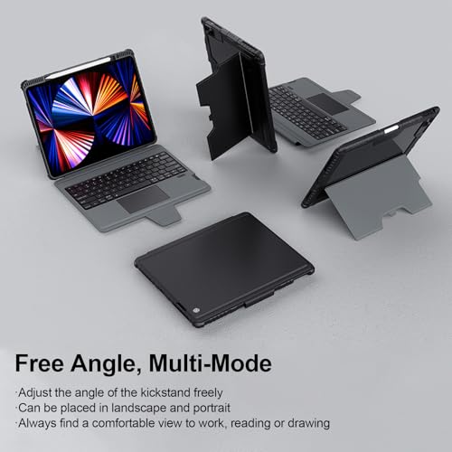 Nillkin - حافظة كيبورد لجهاز ايباد برو 12.9 الجيل السادس مع لوحة تحكم باللمس سحرية، حامل قلم مدمج، قابل للفصل، غطاء كاميرا منزلق متوافقة بوصة الخامس/الرابع/الثالث، بلوتوث، أسود، أكريلونيتريل بوتادين ستايرين