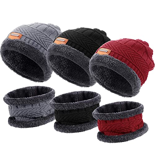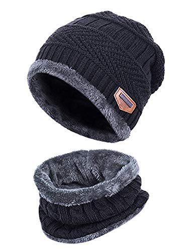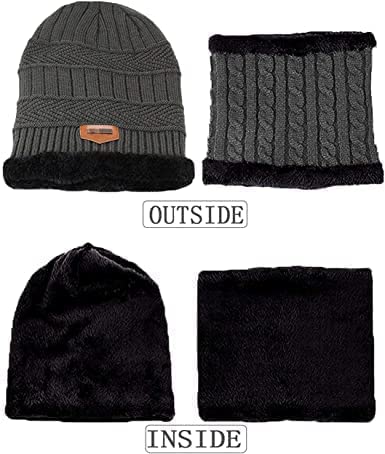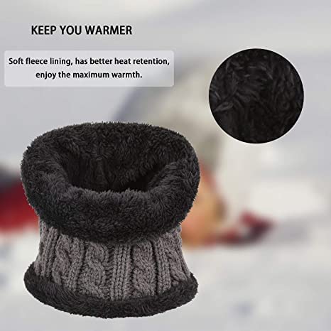 Niralasa - قبعة صغيرة شتوية دافئة من الصوف والفرو مع كاتم صوت | مجموعة تدفئة الرقبة من نيرالاسا قبعة شتوية مبطنة بالصوف السميك + طقم وشاح | قبعة مبطنة بالصوف الدافئ مع وشاح للرقبة | رمادي، مقاس واحد