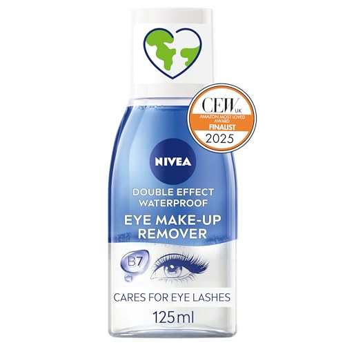 NIVEA - نيفيا مزيل مكياج العين المضاد للماء بتاثير مزدوج (125 مل)، منظف الوجه للاستخدام اليومي للمكياج والماسكارا مع مستخلص زهرة الذرة والبيوتين
