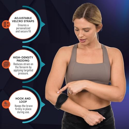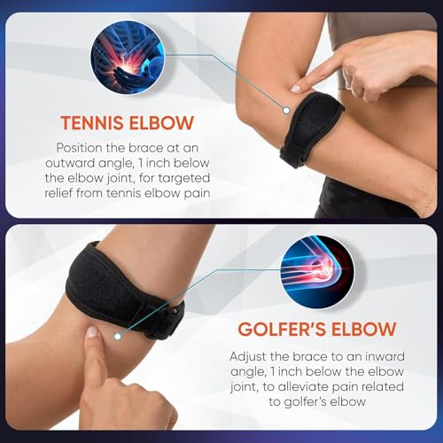 - مصممة لتخفيف الضغط على المرفقين أثناء النشاط البدني، تقلل هذه الدعامة من الضغط الناتج عن التنس أو الجولف أو المهام المتكررة التي يمكن أن تؤدي إلى الألم وعدم الراحة. ادفع حدودك بثقة، مع العلم أن مرفقيك محميان.