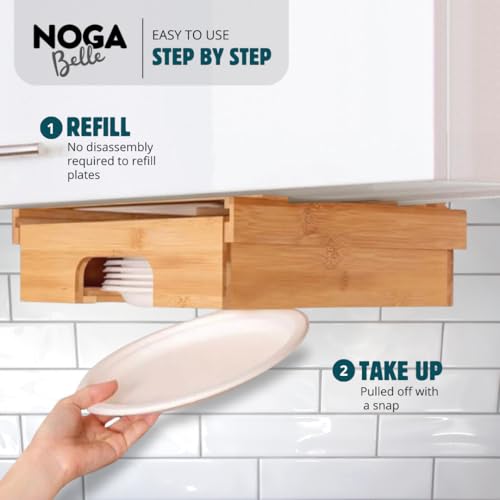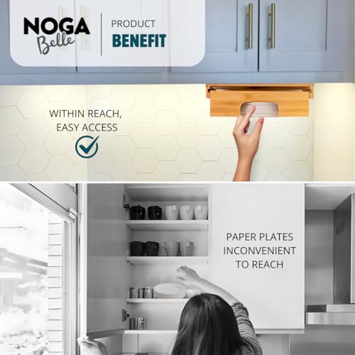 Noga Belle - موزع أطباق ورقية بحجم من 21.6 إلى 30.5 سم يُركب أسفل الدولاب، حامل أطباق عمودي يُثبت أسفل الدولاب لسطح المطبخ من نوجا بيل (قابل للتعديل لأربعة أحجام مختلفة من الأطباق الورقية، من خشب البامبو)