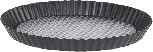 Generic - صينية تارت وبيتزا غير لاصقة بحواف مموجة، صينية خبز دائرية للكيش، أسود (22 سم)