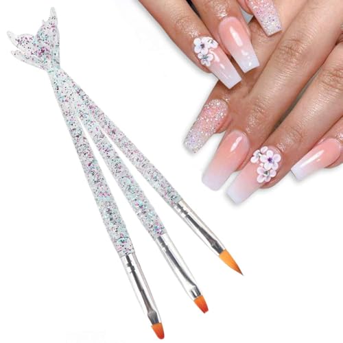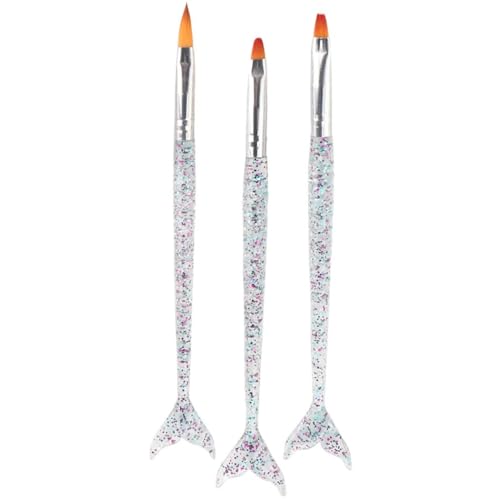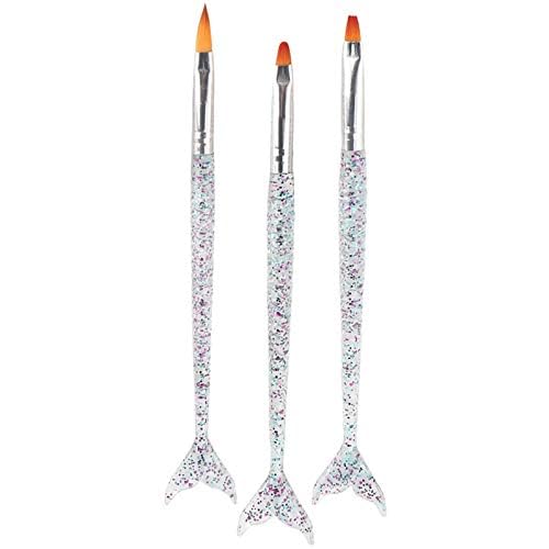 Nopatia - طقم فرش أظافر أكريليك 3 قطع من Nopatia تصميم مقبض حورية البحر المبتكر - فرش احترافية لطلاء الأظافر وفن الجل وتصميم الرسومات الدقيقة