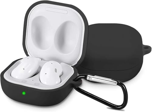 Nopatia - جراب حماية من السيليكون الفاخر من Nopatia لأجل سامسونج بودز لايف مع سلسلة مفاتيح معدنية متينة حماية شاملة وتصميم مدمج مضاد للصدمات خفيف الوزن وسهل الحمل للاستخدام اليومي (أسود)