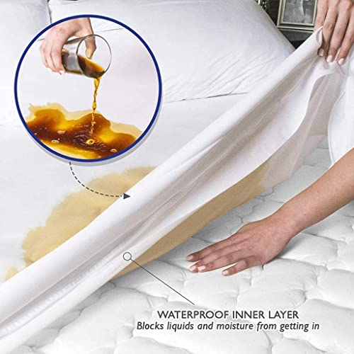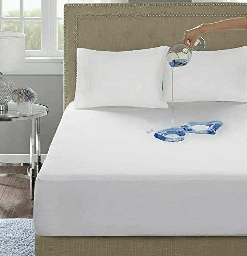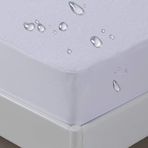 NSR - واقي مرتبة مقاوم للماء مقاس مزدوج 90 سم × 2 متر، غطاء مرتبة بحواف بأستك وتصميم مرن مزود بمسامات للتهوية، أبيض، من ان اس ار