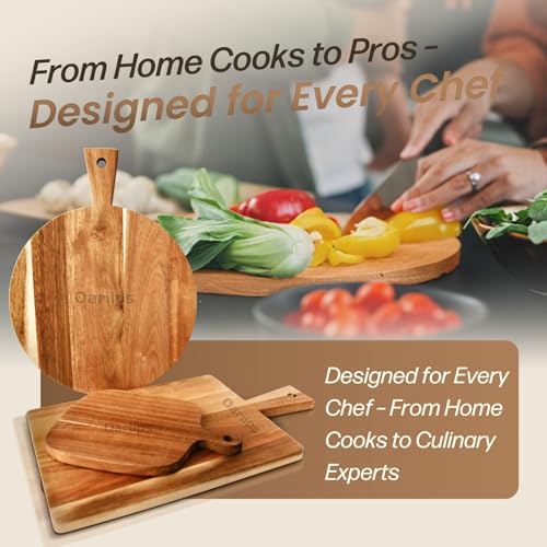 Oariips - ألواح تقطيع وتقديم من خشب الأكاسيا، تتميز بمقابض وتصاميم مختلفة (دائرية، ومستطيلة، وشكل مجداف صغير)، صينية لتقديم الجبن واللحوم والبيتزا والخبز والفواكه من اوربيس، من 3 قطع
