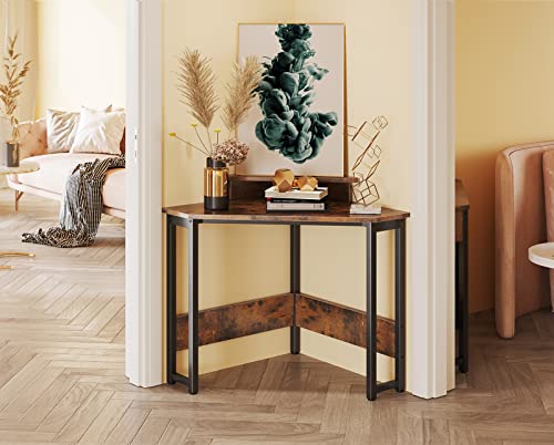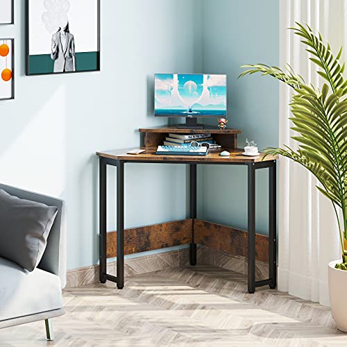 ODK - مكتب زاوية صغير من او دي كيه موفر للمساحة مع إطار من الصلب قوي، مكتب كمبيوتر مع حامل شاشة للمساحات الصغيرة، مكتب فانيتي مثلث سهل التجميع مع سطح مكتب خشبي متين، فينتاج