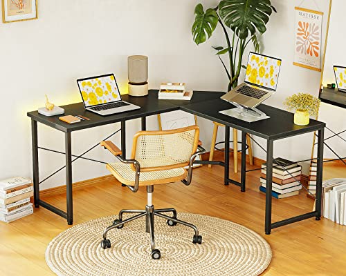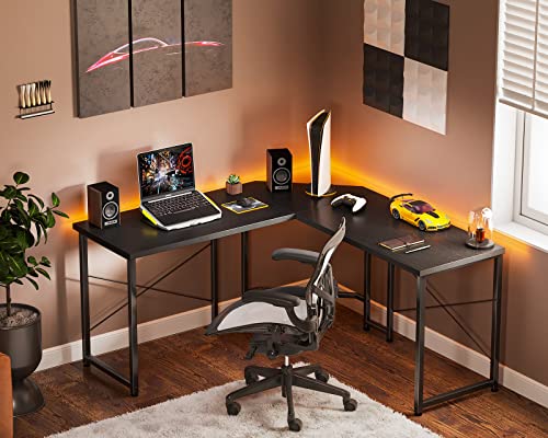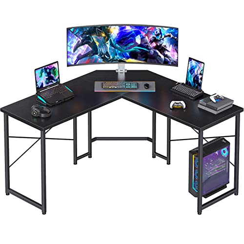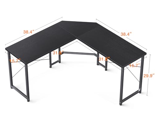 ODK - مكتب علي شكل حرف L من اوه دي كيه للمنزل ذو المساحة الصغيرة، مكتب ألعاب على شكل حرف L مقاس 1.19 متر، مكتب زاوية لألعاب الكمبيوتر، مكتب كمبيوتر، أسود