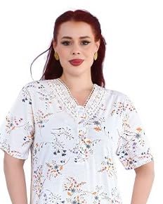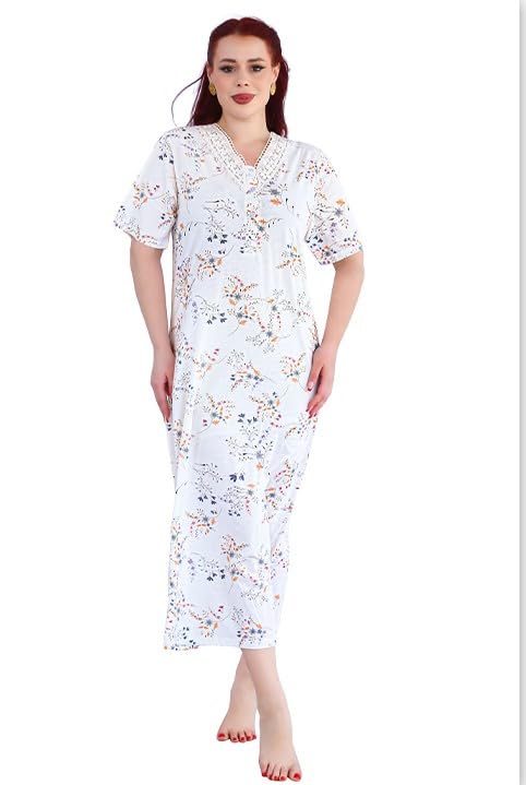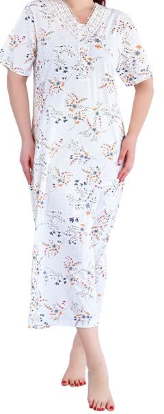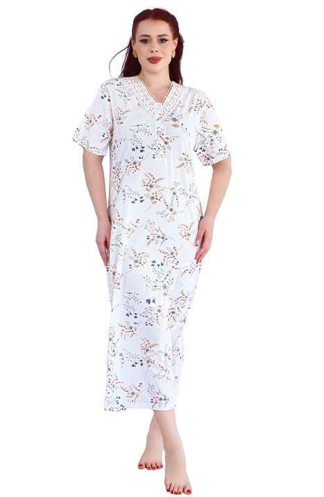 Dadoush - قميص نوم حريمي بأكمام قصيرة، بوليستر وقطن، لون أوف وايت بطبعة أزهار