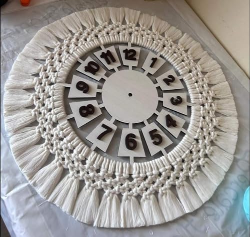 - ساعة خشبية مكرامية وارابيسك بلون أوف وايت