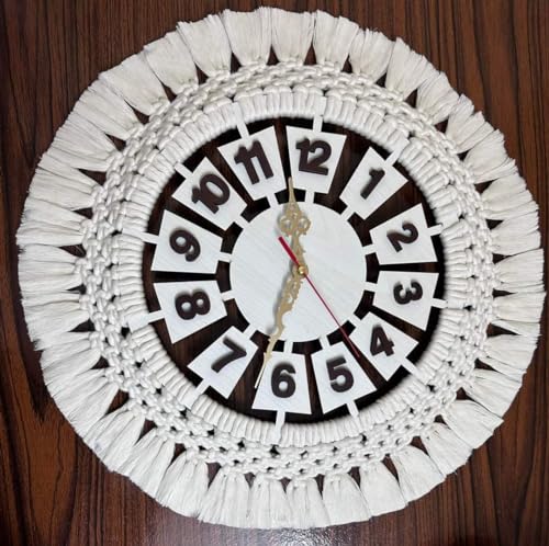 Generic - ساعة خشبية مكرامية وارابيسك بلون أوف وايت