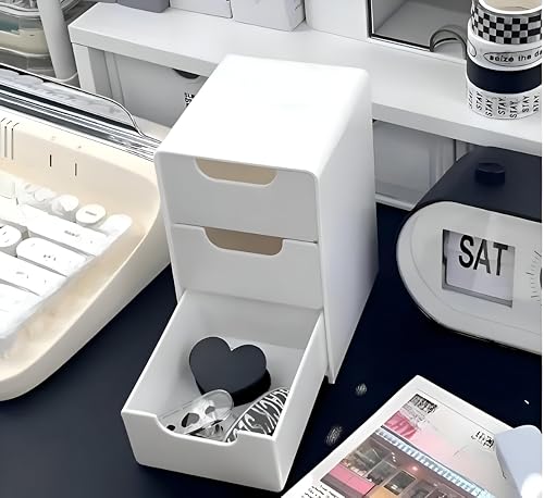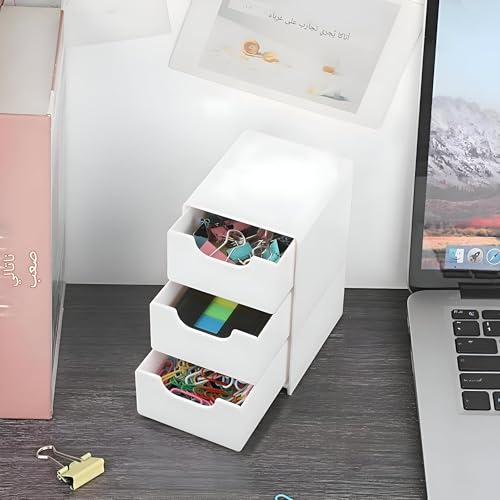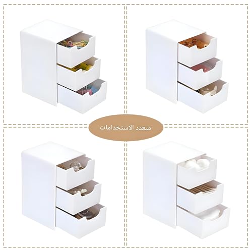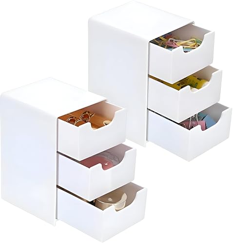 Generic - منظم تخزين مكتبي - منظم شامل من ثلاثة طوابق لمستلزمات المكتب وادوات التجميل والمجوهرات للحفاظ على المساحة نظيفة وأنيقة (منظمان ابيض)