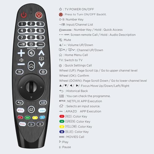 - جهاز تحكم عن بعد عالمي لتلفزيونات ال جي الذكية مع إضاءة خلفية، متوافق مع جميع أجهزة التحكم عن بعد لتلفزيون ال جي الذكي (بدون وظيفة صوت ولا وظيفة مؤشر)