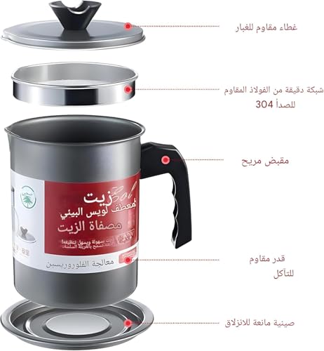 - تخزين زيت متعدد الاستخدامات: مثالي لتصفية وتخزين زيت الطهي بعد القلي، مما يساعدك على إعادة استخدام الزيت بأمان وتقليل النفايات في المطبخ.