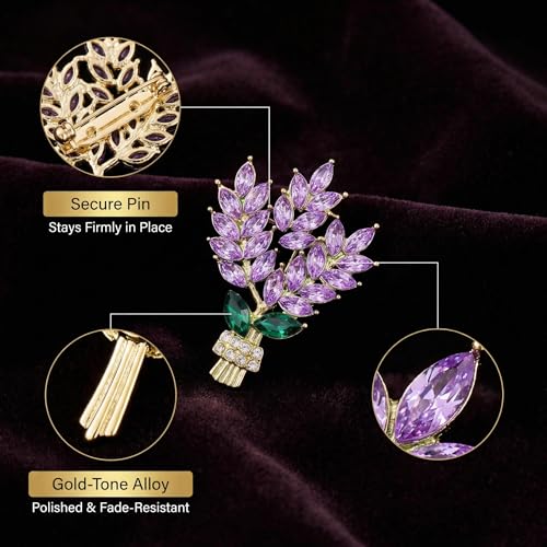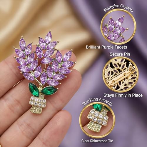 OKKRMGZ - بروش ارجواني للنساء من او كيه كيه ار ام جي زد، بروش على شكل زهرة اللافندر مرصع باحجار الراين، مجوهرات انيقة للنساء، اكسسوارات انيقة لحفلات الزفاف