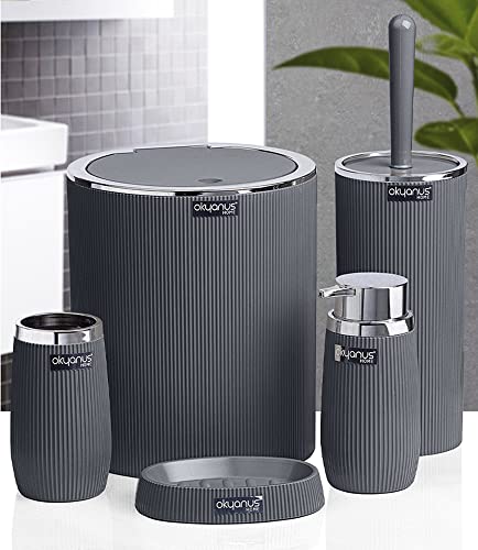 okyanus home - طقم حمام منزلي مكون من 5 قطع من اوكايانوس، مخطط دائري، اوشينوس - فضي *