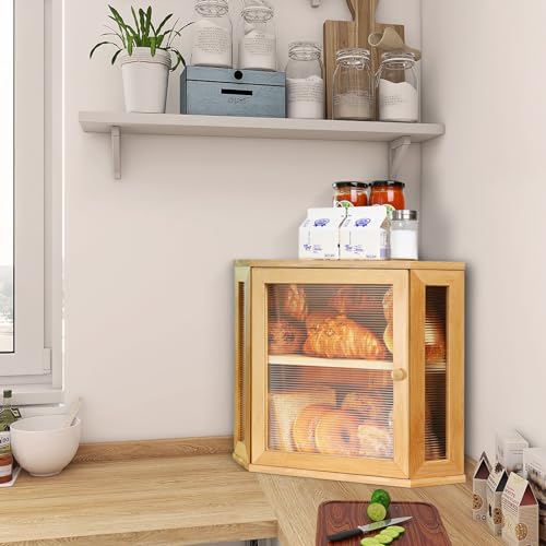 Ollieroo - عياشة عبارة علبة لتخزين الخبز من خشب البامبو مزدوجة الطبقات بباب مموج ولوحة من الأكريليك وبسعة كبيرة لتخزين الخبز على سطح طاولة المطبخ من اوليرو، مقاس متوسط M