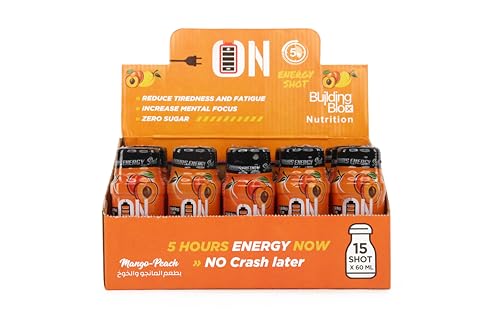 ON Energy Shot - مشروب طاقة سائل من اون انيرجي شوت، بنكهة المانجو/ الخوخ، 15 حصة، قبل التدريب، يحتوي على أحماض أمينية