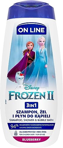 On Line - جل استحمام مرطب 3 في 1 بتصميم فرزن من ديزني وبرائحة التوت الأزرق اون لاين - 400 مل أبيض