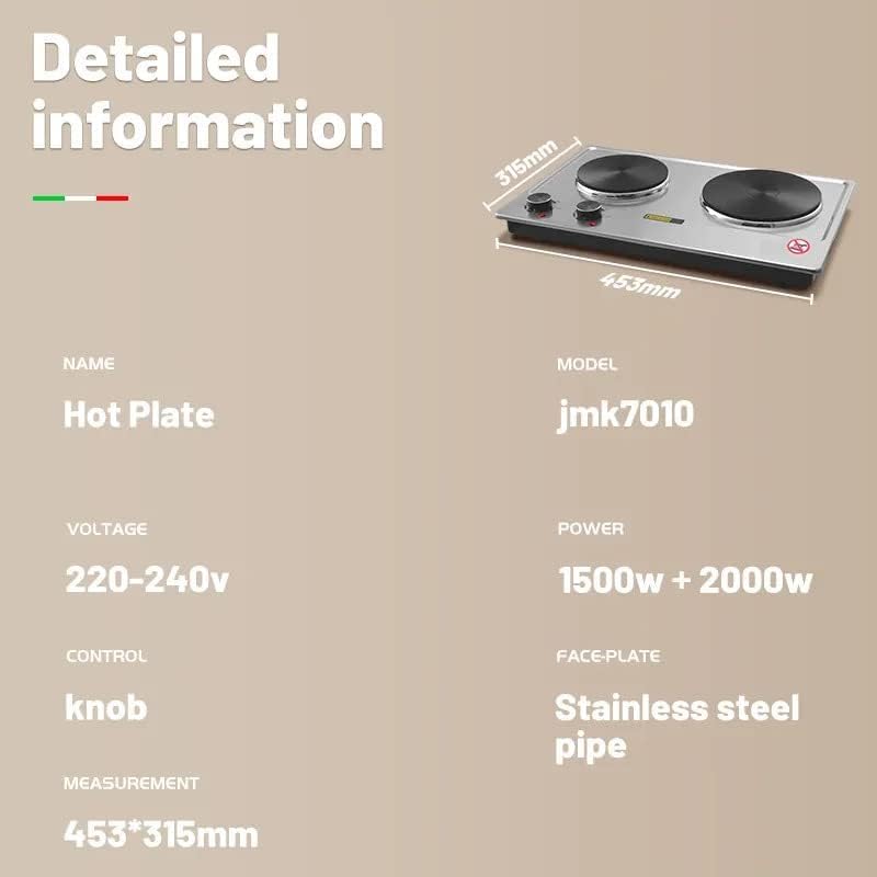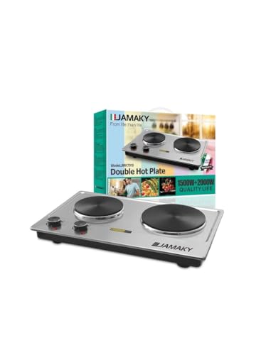 Generic - بوتاجاز كهربائي مسطح مزدوج من جاماكى ضمان عام ( 1500 وات + 2000 وات) آمن ، محمول ، للطبخ