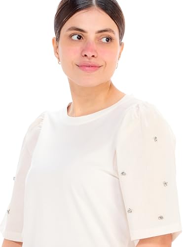 ONLY - بلوزة لينا بأكمام منتفخة مزينة بتفاصيل لامعة للنساء من اونلي