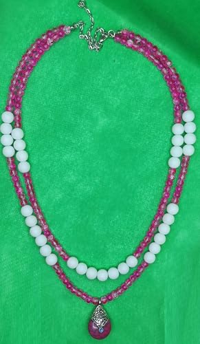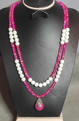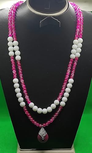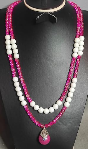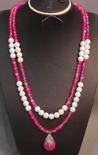 Generic - عقد من العقيق اليماني والمرمر من اكسسوارات مليكة - ابيض في فوشيا، للنساء