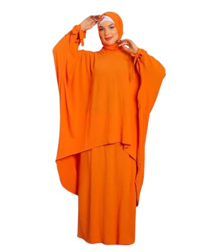 Generic - عباية برتقالية بأكمام واسعة، تصميم فضفاض، ملابس محتشمة للنساء