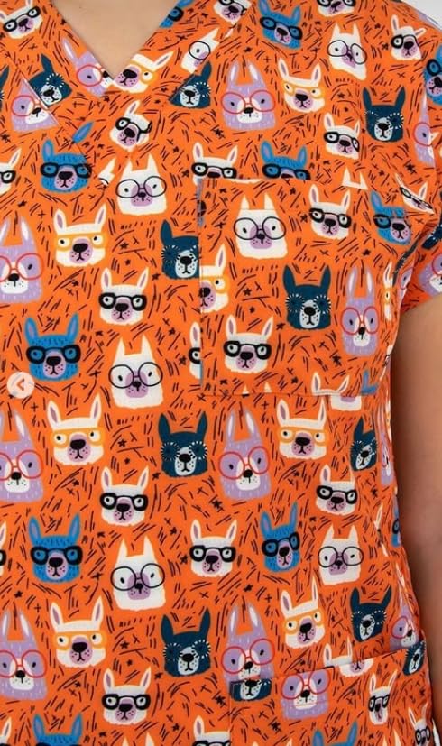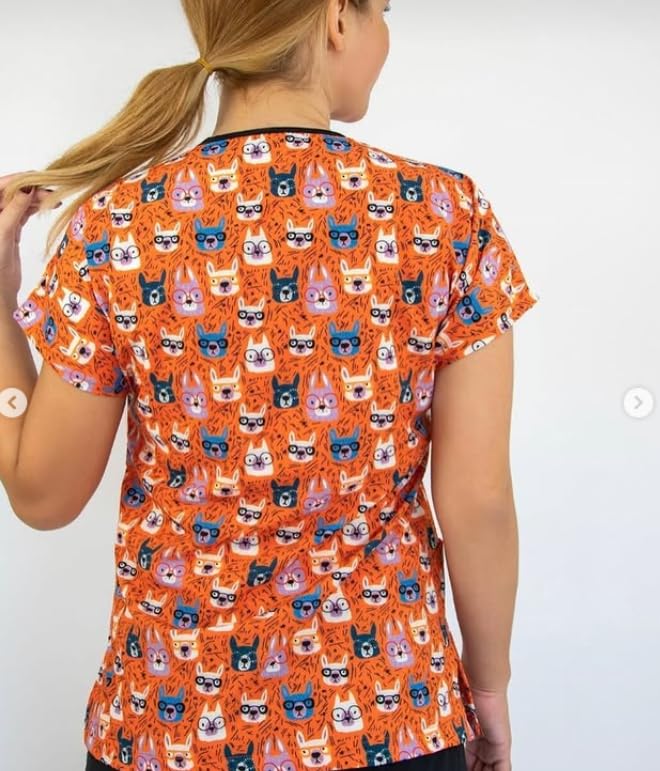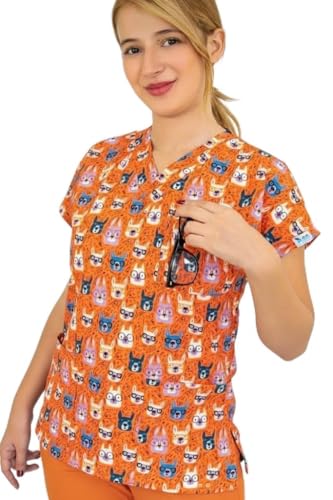 Resan Medical wear - زي طبي مطبوع للمستشفى للجنسين - قميص طبي للجراحة - نصف كم - زي طبي (لون أزرق، مقاس لارج L) من اورانج دوجز