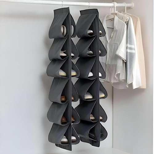 • تتميز حقيبة تخزين الأحذية المعلقة هذه بـ 12 مساحة تخزين واسعة، مما يوفر مساحة تخزين منظمة لأزواج متعددة من الأحذية، مما يجعلها مثالية لزيادة المساحة في الخزانات أو غرف النوم.