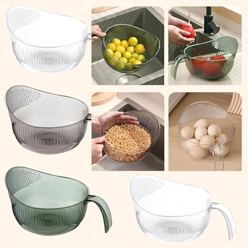Generic - منظم - وعاء غسيل الارز الاكريليك صغير الحجم متعدد الوظائف مع مقبض مريح، عملي لشطف الفاصوليا والخضروات والفواكه، يوفر دعم تصريف موثوق بدرجات متنوعة نابضة بالحياة