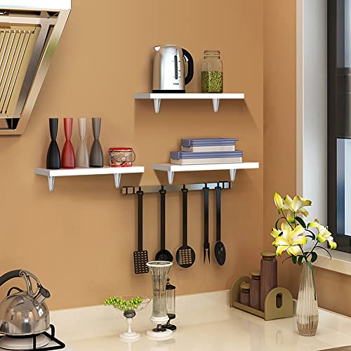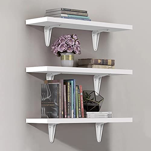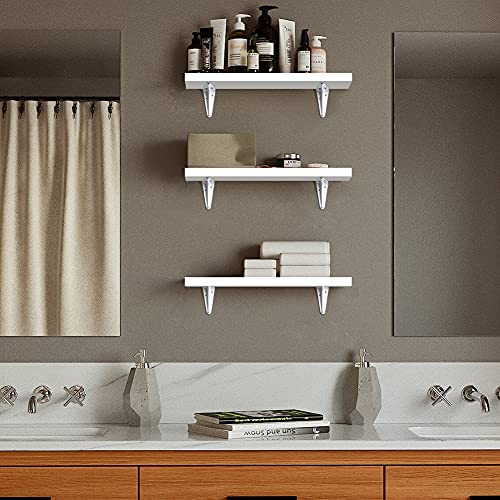 OUDIE - مجموعة ارفف معلقة على الحائط من اودي، رفوف تخزين مثبتة على الحائط، ارفف حائط خشبية لغرفة المعيشة وغرفة النوم والحمام، ابيض، مجموعة من 3 قطع، خشب مُصنع