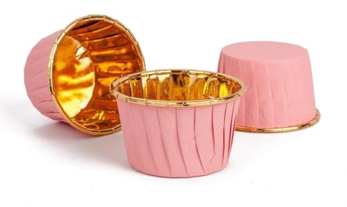 Generic - قالب كب كيك مافن قابل للتوسيع بلمسة نهائية داخلية من الخارج والذهبي، عبوة من 50 قطعة (بينك)