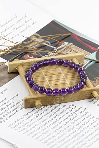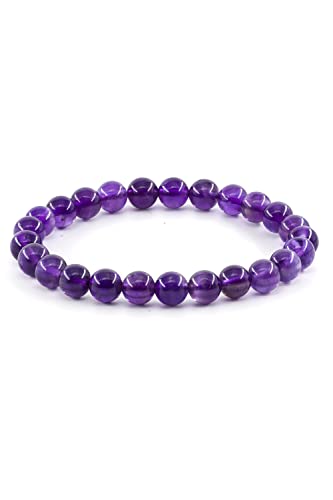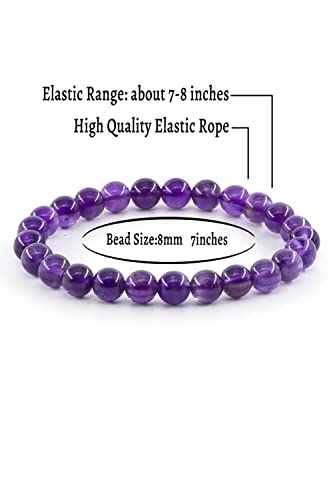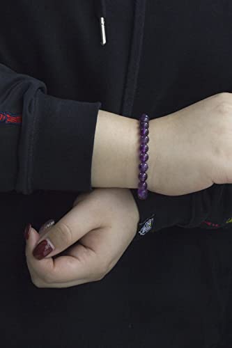Ouubuuy - سوار احجار كريمة طبيعية 8 ملم خرز دائري من كريستال ريكي العلاجي مرن يمكن تقديمه كهدية زينة بطول 7 بوصة للنساء