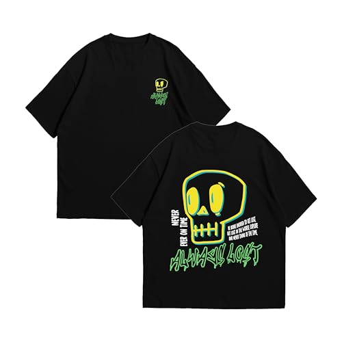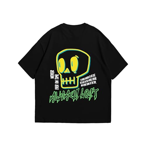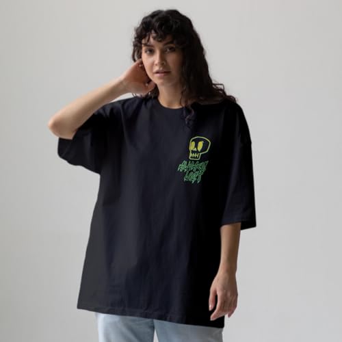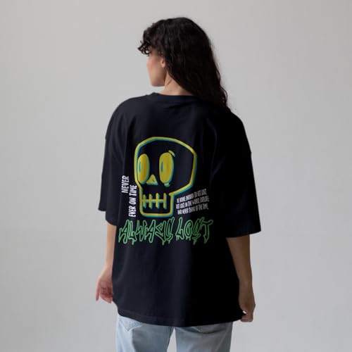 Print n Go - تيشرت قطن كبير الحجم بتصميم جمجمة للجنسين