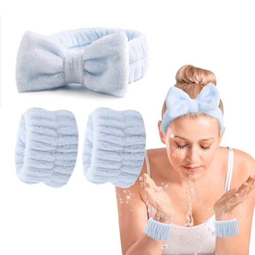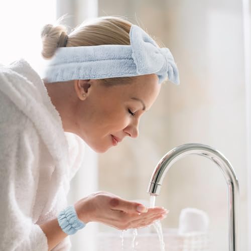 owiter - مجموعة عصابة راس واساور معصم للعناية بالبشرة والمكياج وغسل الوجه والمنتجعات الصحية وغسل الوجه (لون ازرق، 1)