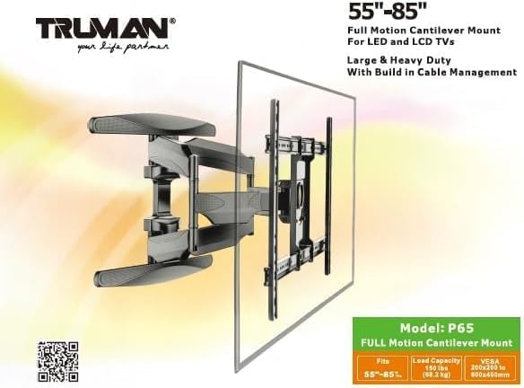 Generic - حامل شاشة تلفزيون متحرك يثبت على الحائط P65 من ترومان، مناسب لشاشات مقاس 55-85 بوصة، أسود