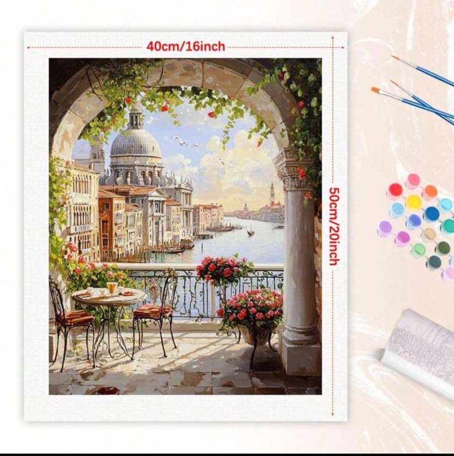 Generic - مستلزمات الرسم بالأرقام، مشهد شرفة فينيس، 40 × 50 سم، مستلزمات فنية قماشية لمشروعاتك الخاصة مع فرش وألوان