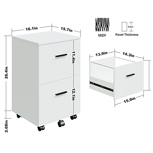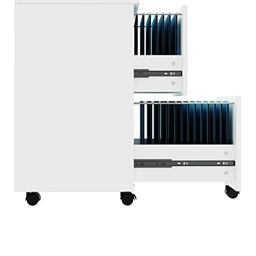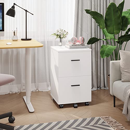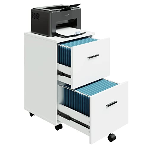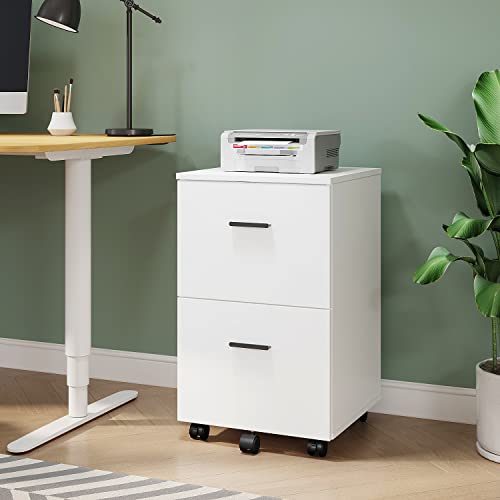 Panana - خزانة ملفات متنقلة مع درجين صغيرة دوارة من الخشب مناسبة تحت المكتب أو في المنزل لون أبيض، من بانانا