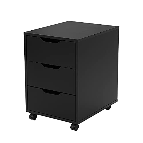 Panana - دولاب ملفات مكتبية متحركة مع 3 أدراج، وحدة تخزين خشبية بيضاء مع عجلات دوارة توضع تحت الطاولة مع قاعدة جانبية للملفات والمستندات من بانانا (أسود)